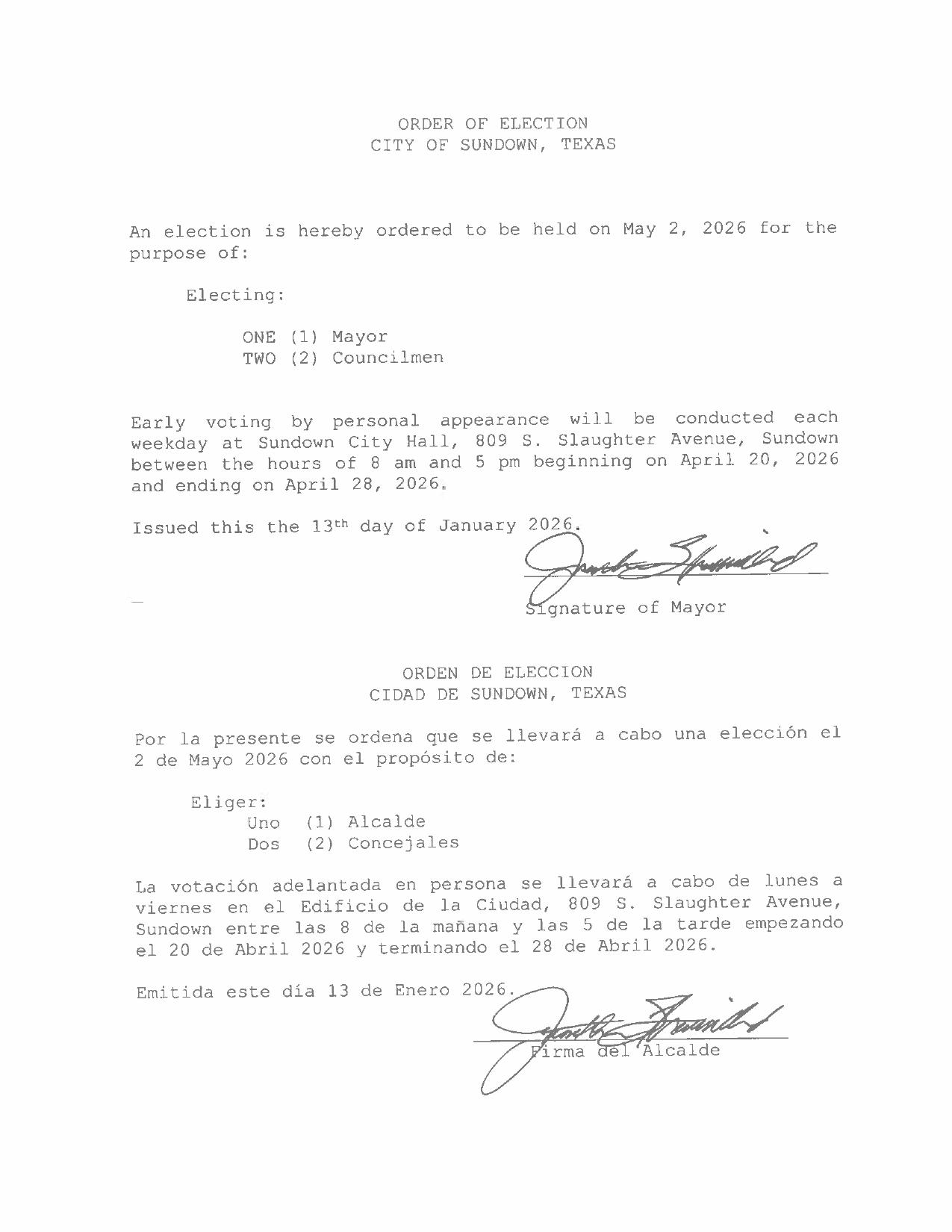 Order of Election 2026